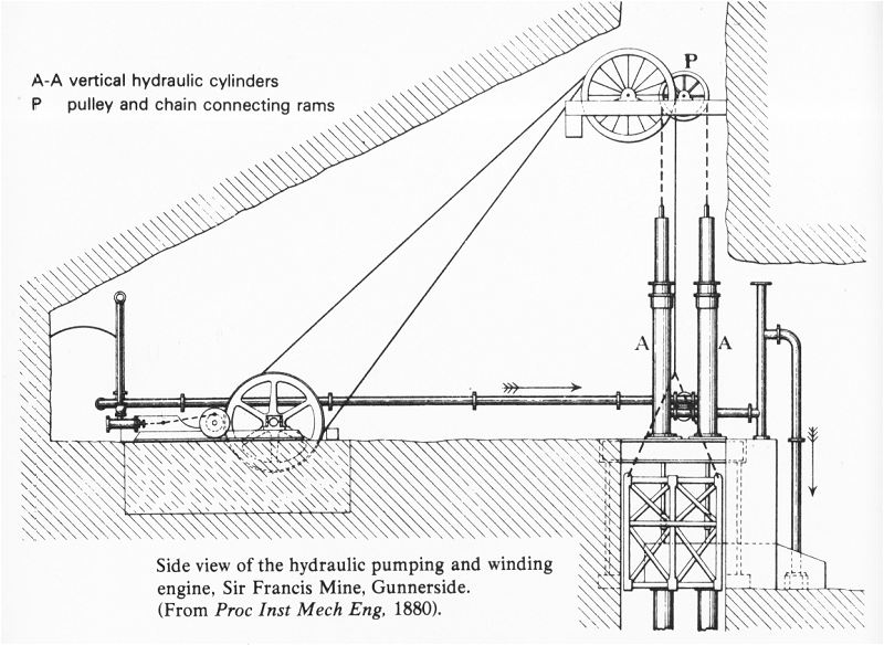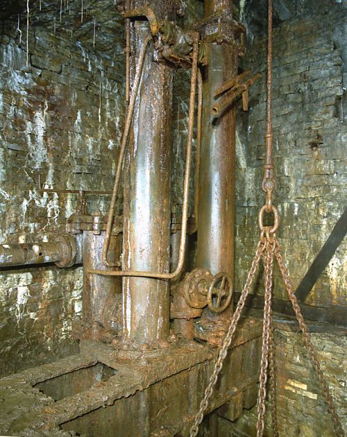 ![]() | Left: Hydraulic winding-engine and dual hydraulic pump at Sir Francis mine