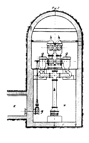 ![]() | Left: End elevation of a Kaselowsky pump installed underground: 1900.