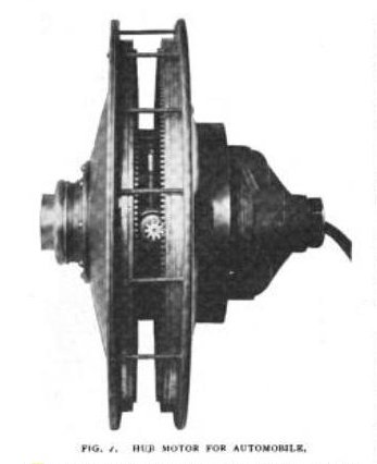 The motors in the truck wheels are fully described in the 1904 article. The motor shaft was horizontal and at each end it had a small pinion, each driving a separate toothed ring attached to the wheel. The arrangements in the diwheel were very probably similar. What Mr Holson may not have appreciated is that all the motors were unsprung weight which would have a bad effect on handling.