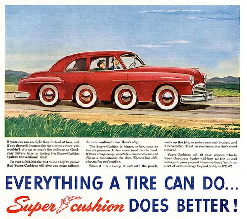 Here we have six front wheels, and twelve rear wheels, for a meritorious total of eighteen. You may be wondering why twelve wheels are required to support the rear of the car; it's because that's where the swimming pool is.