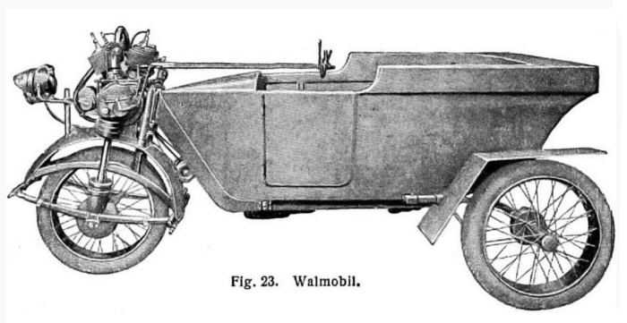 However, I am informed it is actually a Cyklon Cyklonette, made from 1904 to 1924. This is a still from the film Die Drei von der Tankstelle (1930) meaning "The Three from the Gas-Station". There is a brief Wikipedia page.