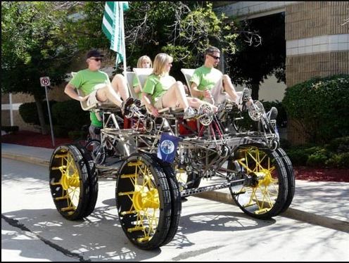 Whether this hefty vehicle counts as a quadracycle is questionable, but it was certainly propelled by pedal-power.