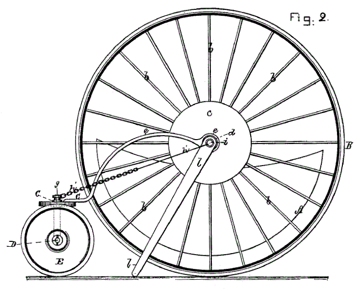 The lever marked l is a crude brake that dragged on the ground when applied by the rider; does not sound very practical to me.