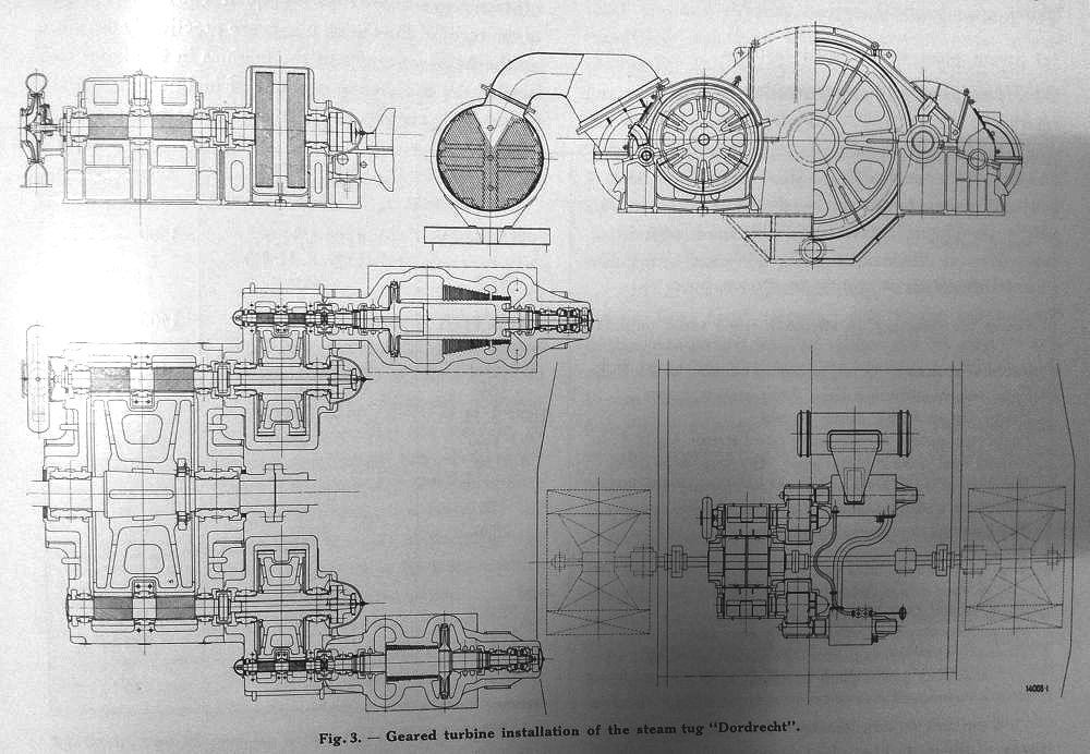 ![]() | Left: The turbine installation of the Dordrecht: 1925